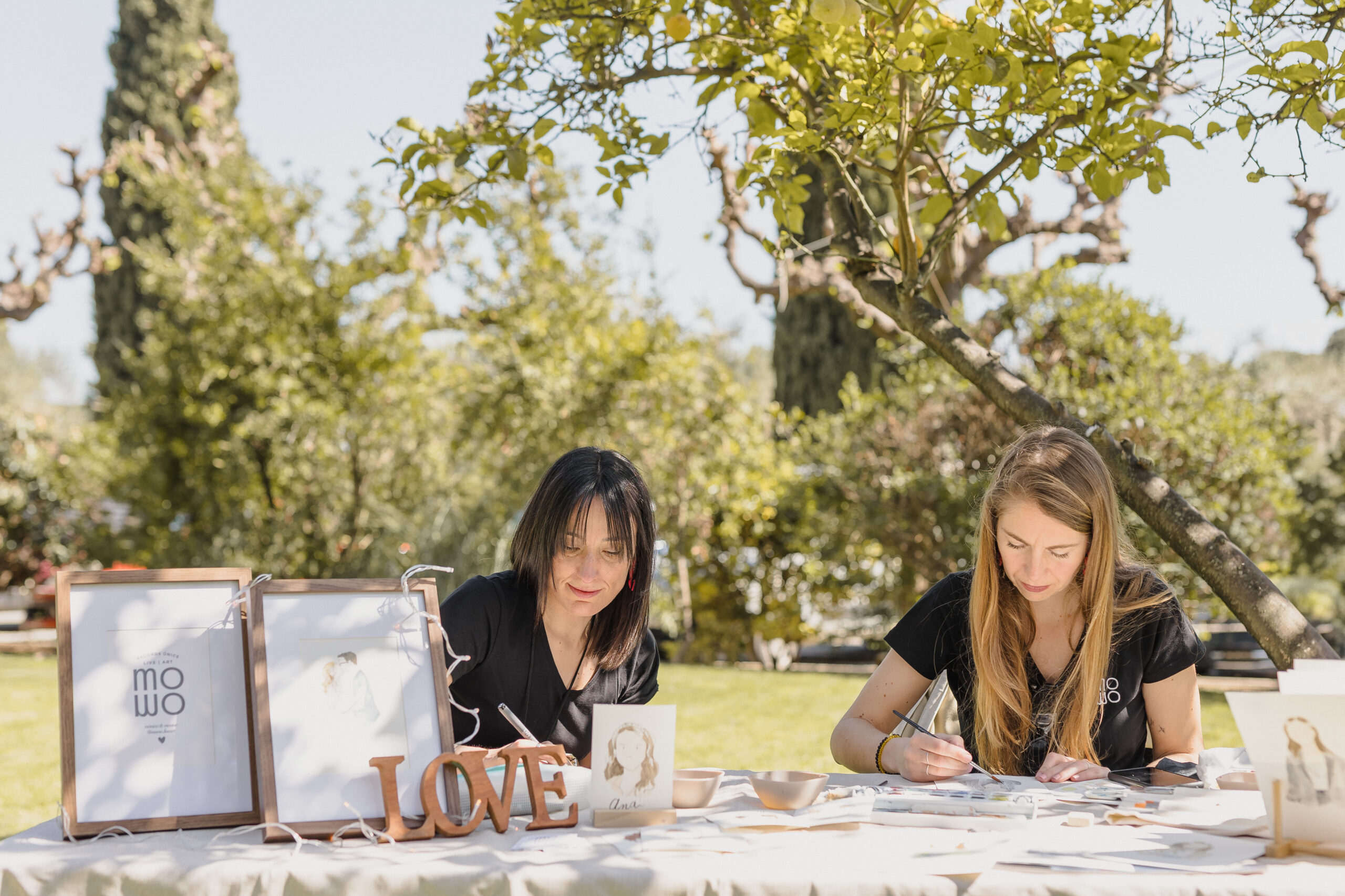 MoMo som la Mònica i la Montse, dues artistes apasionades per l’art en directe i la il·lustració. Ens encata capturar l’essència dels moments especials i convertir-los en obres d’art úniques i personals.